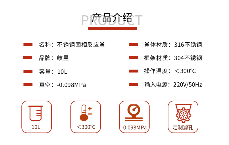 本款不銹鋼多肽固相合成反應(yīng)釜,以316不銹鋼為核心主材,經(jīng)過(guò)電解拋光處理,防腐耐用。四氟過(guò)濾底板,拆卸方便,且可以更換不同孔徑。該反應(yīng)釜可用于攪拌、抽濾、多肽合成、結(jié)晶、裂解等實(shí)驗(yàn)工藝,實(shí)用性極強(qiáng)。