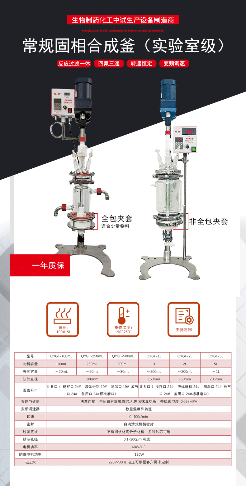 該款雙層玻璃多肽固相合成反應(yīng)釜采用全夾套釜體,微米級孔徑的四氟過濾底板,反應(yīng)穩(wěn)定,耐腐蝕能力強