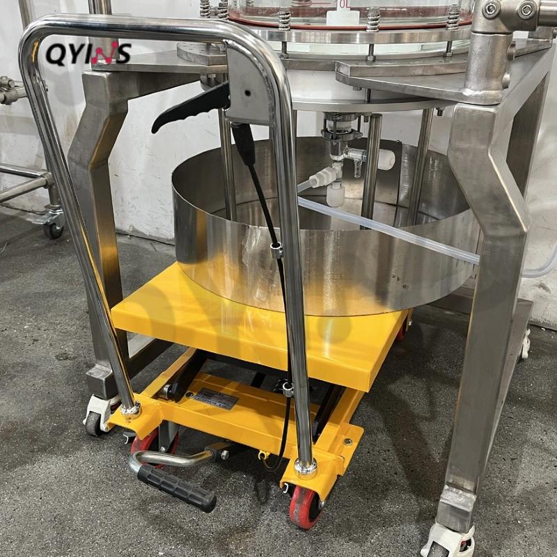 液壓升降車輕松輔助使用人拆裝過濾裝置。小車移動靈活,非常適合需多臺固相釜操作的場景。
