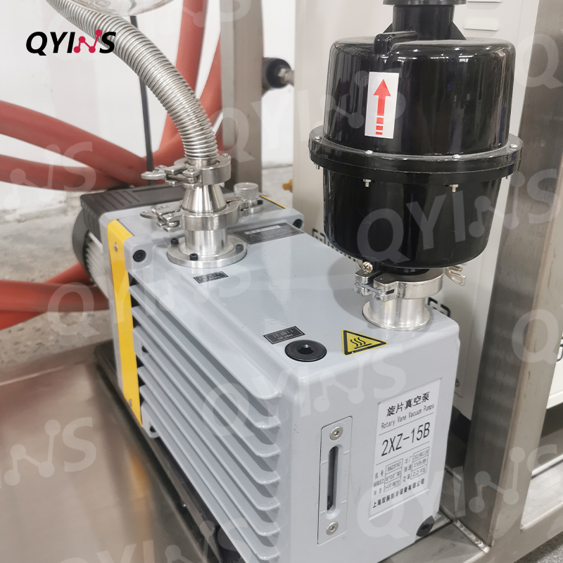 本款不銹鋼分子蒸餾,主材采用316不銹鋼,配備旋片式真空泵及擴(kuò)散泵,極限空載真空度可達(dá)1Pa以內(nèi)。在齒輪泵作用下,物料能夠?qū)崿F(xiàn)自動(dòng)進(jìn)出,且進(jìn)出管道全部采用夾套保溫設(shè)計(jì),避免高熔點(diǎn)物料在反應(yīng)過程中固化結(jié)晶。